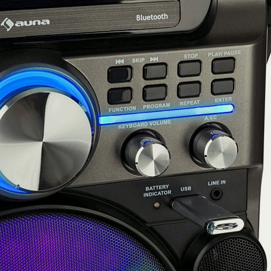 Система auna DisGo Box 360 Party BT - идеальное решение для караоке или любой вечеринки. Благодаря встроенному аккумулятору и максимальной мощностью в 350Вт.