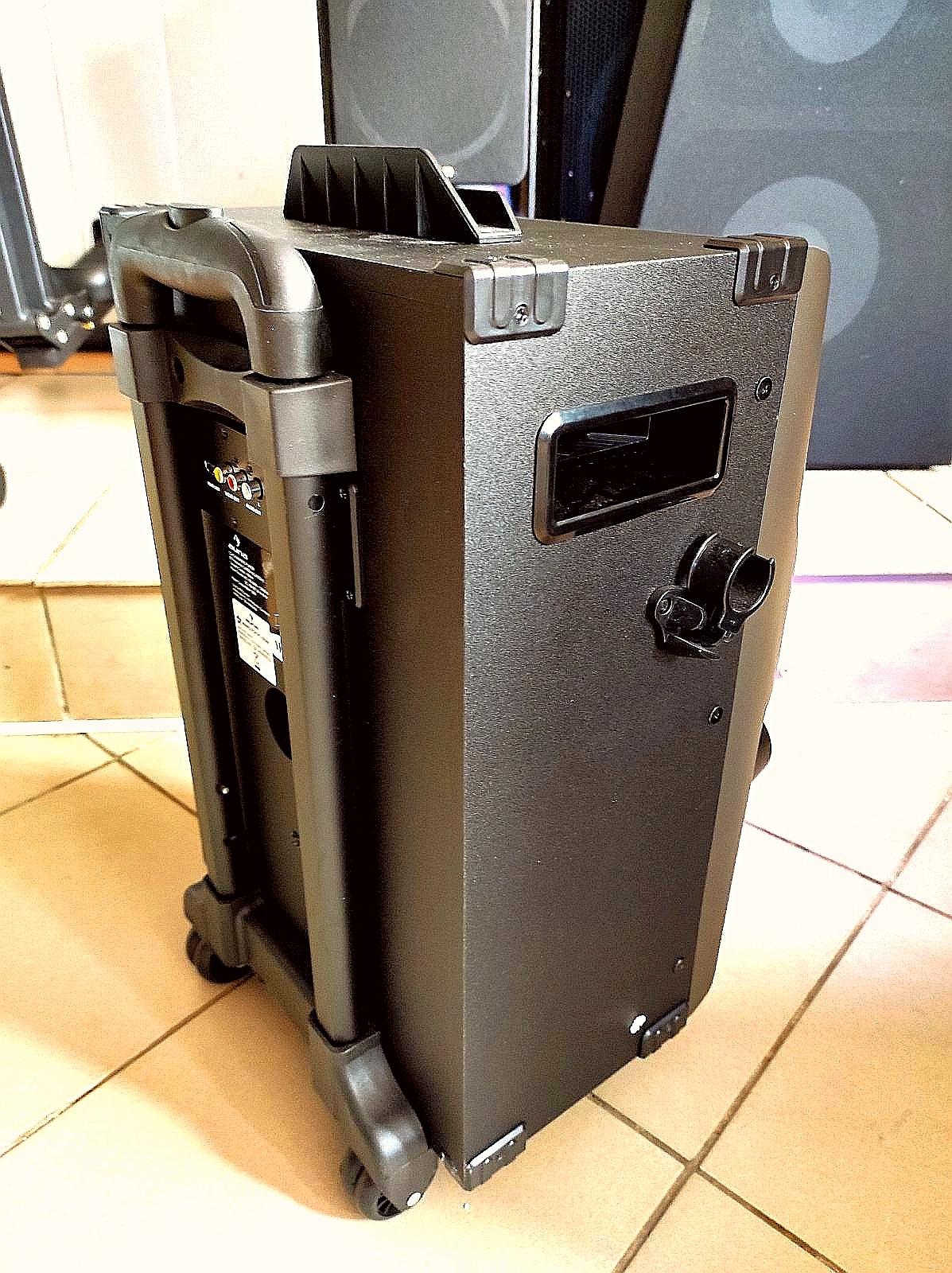 Mobile Party: светодиодная подсветка для настроения на вечеринку, длительное время игры благодаря аккумулятору и мобильности благодаря ручке и колёсам.