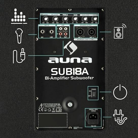 Активный сабвуфер Auna BI-AMP18A (1000 Вт) 18"