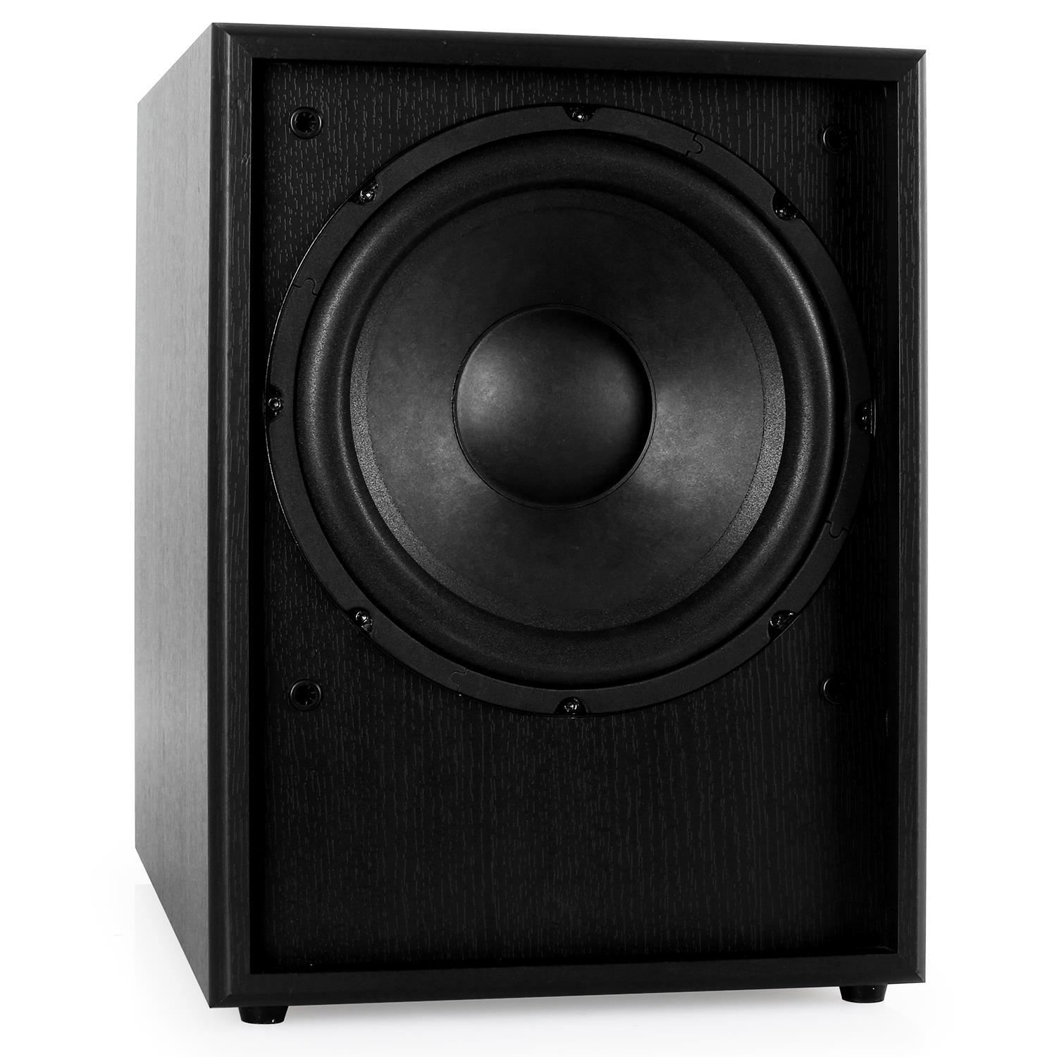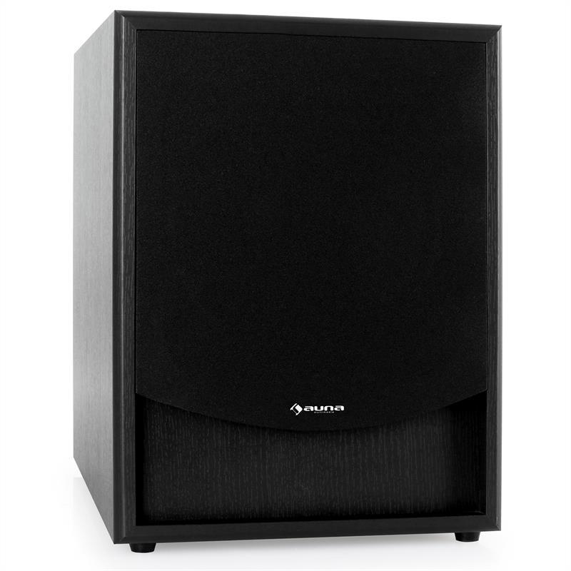 Активный сабвуфер с 25 см (10 дюймов) НЧ-динамиком и встроенным усилителем. Черный фазоинверторный Frontfire корпус с нескользящими ножками. Соединительные клеммы для громкоговорителей объемного звучания и линейные для звукового оборудования. Auna 300-SW сабвуфер является идеальным решением для домашнего кинотеатра и идеальным дополнением для систем со слабым басом. Активный сабвуфер имеет отдельные регуляторы для громкости, фазы и частотной области, чтобы полностью настроить звук по своему вкусу. 25 см (10 дюймов) - низкочастотный динамик генерирует массивный бас. Клеммы динамиков - для других громкоговорителей объемного звучания. Нескользящие резиновые ножки помогают работать без вибраций даже с глубоким басом.