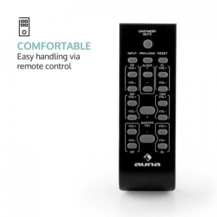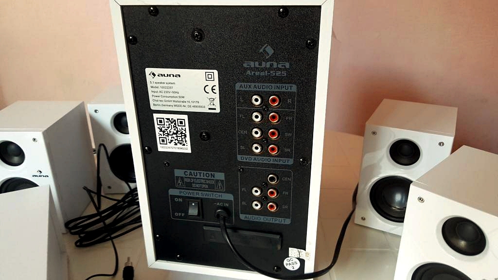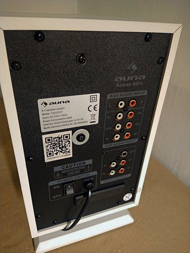 С системой SurroundAunaAreal 525 вы можете экономично модернизировать свою частную зону развлечений до уровня домашнего кинотеатра. Вход 5.1 в акустической системе auna принимает сигнал объемного звучания и распределяет его по 5 элегантным сателлитным динамикам, а также мощный басовый рефлекторный сабвуфер с дизайном и подставкой. Подключить к активной акустики 5.1 звуковое оборудование можно всех типов. Например- проигрыватели компакт-дисков и MP3-плееров, а также ноутбуки и телевизоры - могут быть подключены к громкоговорителям Auna через вход стерео RCA.