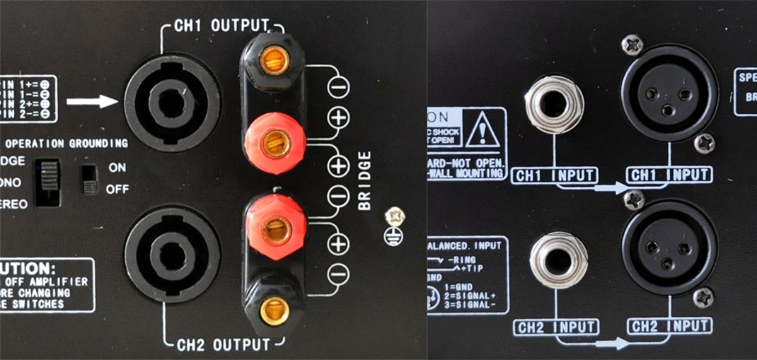 Выходы: 1 x PA Speakon (стерео), 2 x винтовых клеммы (стерео, позолота)