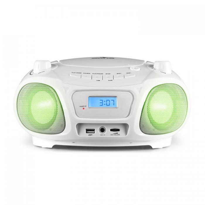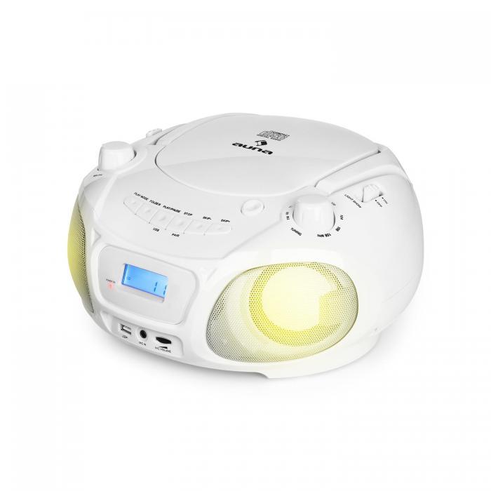 Boombox воспроизводит аудио, MP3 и CD-RW диски, а USB-порт позволяет легко воспроизводить MP3-флешки. Если под рукой нет носителей информации, встроенное FM-радио легко доставит хитовые каналы или последние новости. Если этого недостаточно, вы можете использовать существующий вход AUX и расширить Boombox дополнительными аудиоустройствами. Со смартфонами и планшетами с поддержкой Bluetooth это становится еще более разнообразным: эти устройства могут быть легко подключены без помех в кабеле. Boombox также является особенно мобильным из-за возможности переключения на работу от аккумулятора, полностью независимую от розеток. Auna Roadie Sing не только позволяет почувствовать ритм во время игры, но и позволяет увидеть его: светодиодный диско-световой эффект позволяет мигать лампами разных цветов. Этот флэш-танец придает каждой вечеринке особую атмосферу и особенно подходит для любой детской дискотеки. Функция sing-a-log обеспечивает приятные вставки для караоке: благодаря прилагаемому микрофону маленькие артисты могут сразу же начать свое выступление и петь или петь вместе с музыкой.