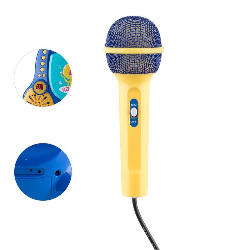 Стерео динамики и два проводных микрофона. Микрофон с отдельным регулятором громкости, эффект эха, регулируемый баланс и функции AVC. Округлый дизайн корпуса без острых углов с удобной ручкой для переноски. Совместимые типы дисков: CD-мультиплекс CD, CD-R, CD-RW. Светодиодный дисплей, большой регулятор громкости, питание DC 9V - 1A или батареи. Размеры: 29,5 х 26,5 х 13 см