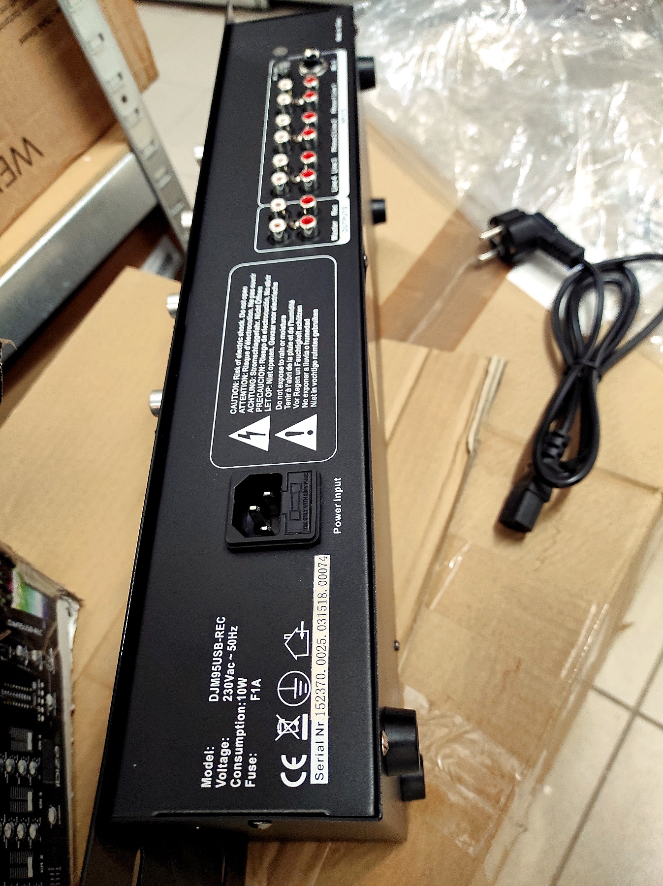 Разъемы: 1 x USB-вход (сверху), 1 x XLR / 6,3 мм разъем для микрофона (сверху), 1 x 6,3 мм разъем для наушников (сверху), 1 x 6, 3-миллиметровый вход для микрофона, 4 линейных стереовхода RCA, 2 стереофонических RCA-входа, 1 стереофонический RCA-выход для записи, 1 стереофонический RCA-выход