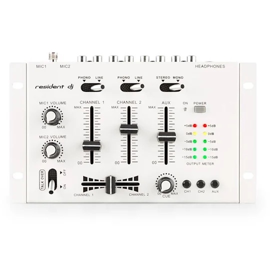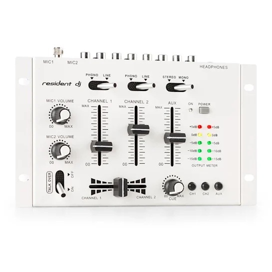 Resident DJ TMX-2211 - это микшер со всеми важными вариантами подключения и его функциями. Структура и управление просты и удобны для пользования пультом. Он предлагает возможность обычной ди-джеской установки, такой как подключение проигрывателя компакт-дисков, проигрывателя винила, компа или ноута и усилителя. Конечно, у него есть и другие функции, которые вам нужны как ди-джею: затухание, Talkover и VU-метр. Громкость наушников плавно регулируется.