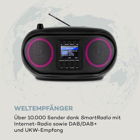 Мировой приемник: более 10 000 станций благодаря SmartRadio с Интернет-радио, а также приемом DAB / DAB + и FM
