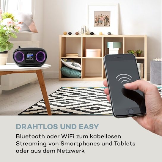 Интернет-бумбокс AUNA Roadie (BT,WiFi,USB,DAB,FM,UX,CD,LED) black
