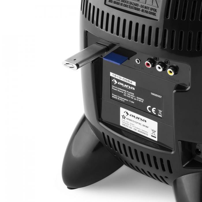 Встроенный CD-привод воспроизводит файлы MP3 и JPEG, а также самые популярные цифровые форматы. В отличие от обычных CD-плееров, система AUNA CD также обрабатывает медиа CD + G - другими словами, караоке-диски с субтитрами. Интегрированный цветной дисплей TFT на 9 см (3, 5 дюйма) экрана auna ScreenStar воспроизводит изображения со вставленного носителя данных и имеет четкое разрешение, а внутренний широкополосный громкоговоритель делает то же самое для звука. Задний видеовыход RCA может быть перенаправлен на внешние устройства, такие как телевизоры, видеопроекторы или мониторы, а аудиосигнал направляется через линейный выход в более мощные hi-fi системы, усилители или активные громкоговорители.