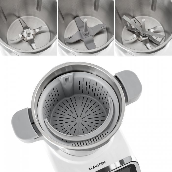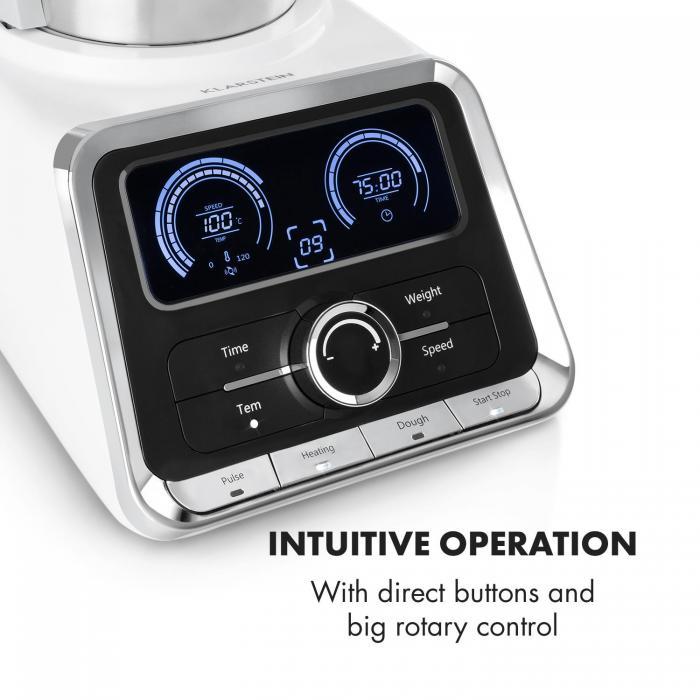 Нагрев комбинированного устройства происходит во время перемешивания, измельчения, смешивания, приготовления пищи и обработок паром на полной скорости. Будь то супы, тесто, салаты, соусы или тушеное мясо - большой в 2,5 литра (2 литра продукта) контейнер доводит до готовности каждое блюдо. Вы всегда имеете полный контроль над подготовкой.