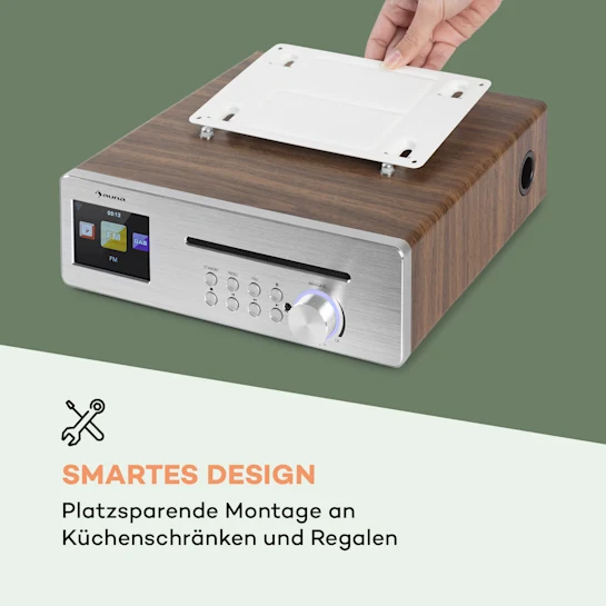 Кухонное интернет радио Silverstar Chef от auna сочетает в себе самые современные технологии с компактным и стильным дизайном.Интернет -DAB + и FM-радио обеспечивают доступ к бесчисленным радиостанциям от местных до самых удаленных станций по всему миру. Благодаря цветному 2,4-дюймовому TFT-дисплею с высоким разрешением и технологией отображения HCC вы всегда можете следить за временем, радиостанцией, треком и информацией о погоде во время прослушивания. Музыка может легко передаваться в потоковом режиме со смартфона, планшета или ПК через интерфейс Bluetooth. Встроенный проигрыватель компакт-дисков воспроизводит самые популярные форматы и впечатляет своей простотой использования. Кухонное радио Silverstar Chef с мощностью 20 Вт макс. Может управляться прямо на устройстве или удобно удаленно через приложение Air Music Control. Расположенный сбоку USB-порт и вход AUX расширяют возможности воспроизведения музыки, просто подключая внешние устройства. Базовое радио также впечатляет таймером сна и функцией будильника и, как следует из названия, легко и компактно крепится под кухонными шкафами и полками. Матовая нержавеющая сталь и корпус с имитацией дерева придают устройству стильный и привлекательный вид. Огромный выбор радиостанций, продуманный и компактный дизайн, а также множество вариантов воспроизведения делают auna Silverstar Chef идеальным помощником на кухне.
