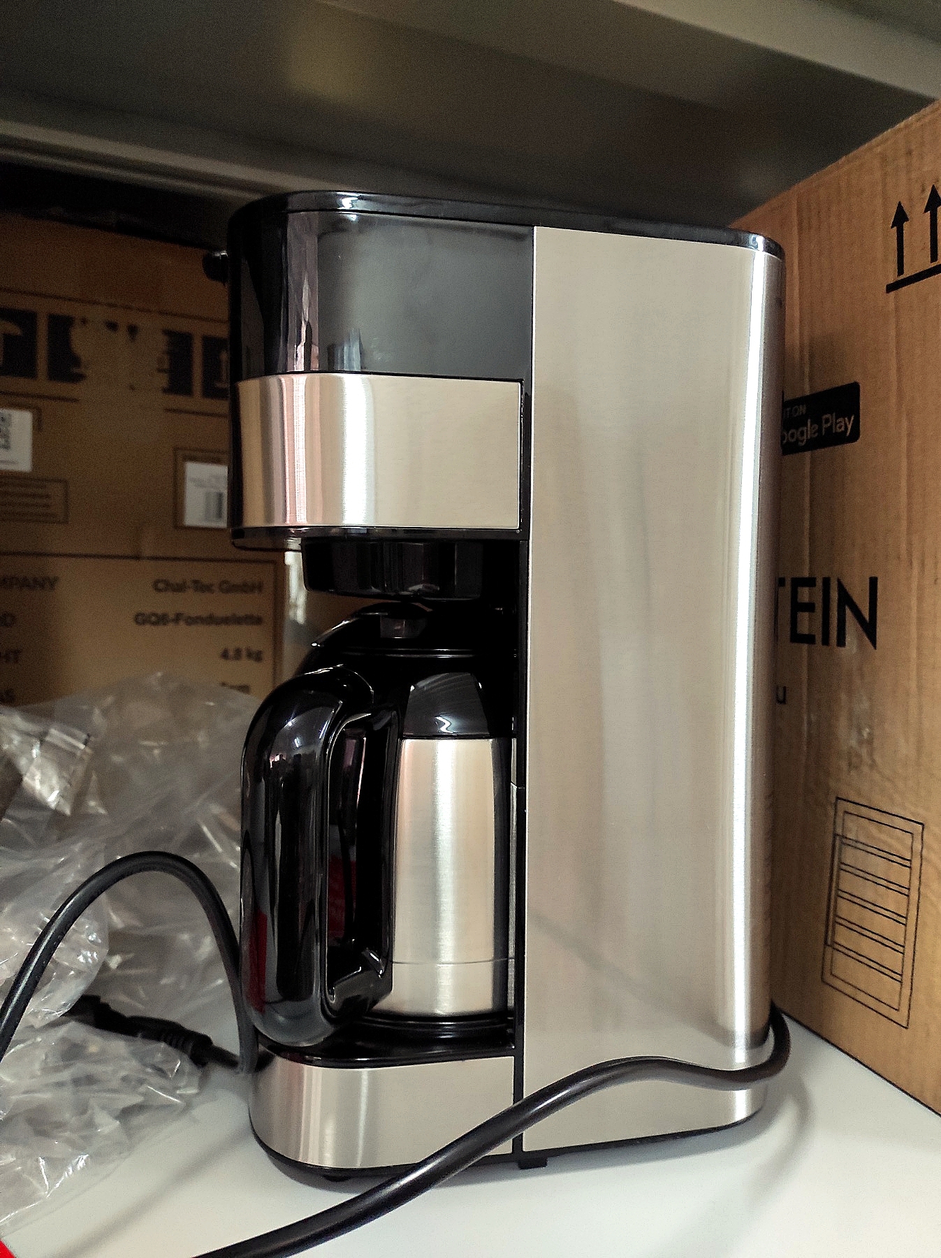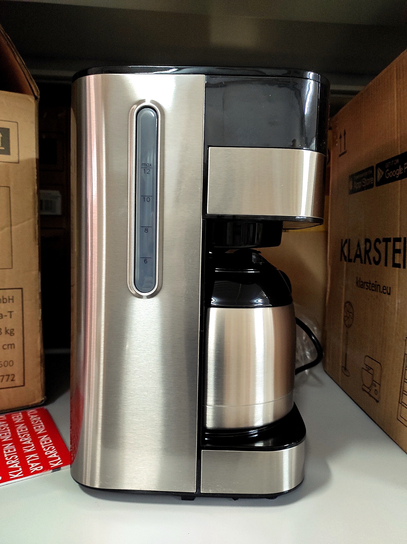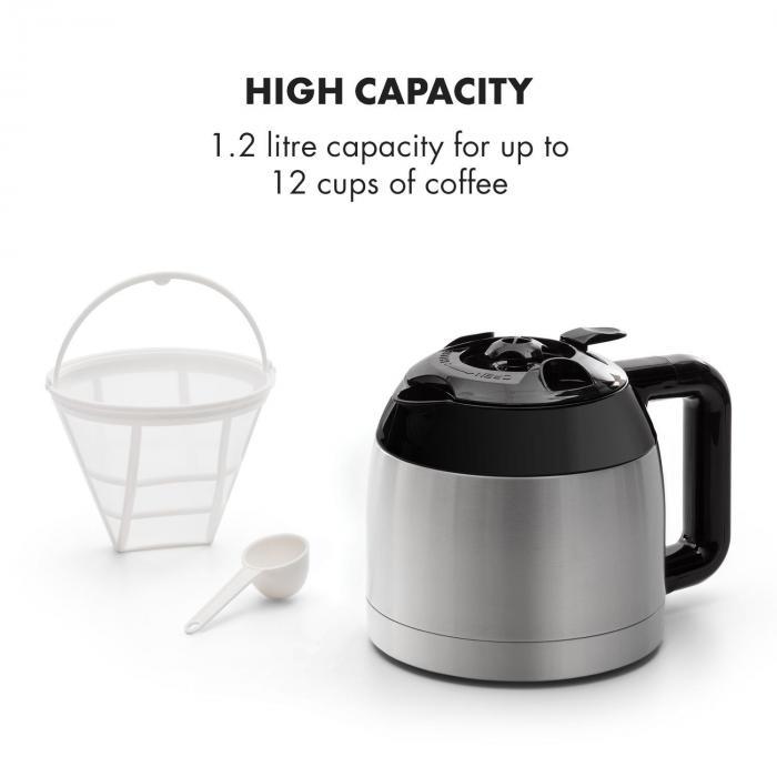 Так как он попадает прямо в термочашу, он также остается очень горячим в течение длительного времени. Кофеварка Klarstein Arabica - это удовольствие для всех чувств благодаря своему элегантному внешнему виду: с матовой поверхностью из нержавеющей стали она придает кухню и офисам визуальный блеск и всегда безопасна на нескользящих резиновых ножках.