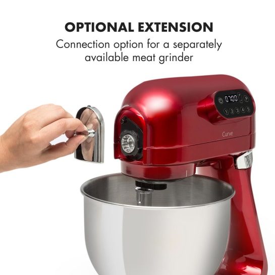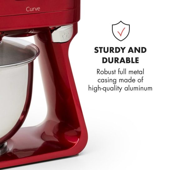 В комплект поставки входят месильные крючки и венчик из высококачественного алюминия и нержавеющей стали. Таким образом, у вас всегда есть правильная насадка. В дополнение к аксессуарам корпус кухонной машины Curve полностью изготовлен из алюминия и впечатляет своим превосходным качеством изготовления.