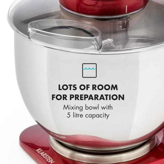 Если вы цените качество, простоту эксплуатации и красивый дизайн при выборе кухонной машины, вы сделаете выбор в пользу кухонной машины Klarstein Curve! Большая чаша для смешивания емкостью 5 литров даже обрабатывает большие количества продуктов и идеально их готовит. Для точного и простого управления доступен светодиодный дисплей с кнопками в верхней части устройства. Кухонная машина Curve с 5 уровнями скорости и импульсной функцией идеально соответствует требованиям современных кухонь. Разумеется, машина работает с планетарной системой перемешивания, в которой сменные перемешивающие элементы не только вращаются вокруг себя, но и постоянно вокруг края чаши. В результате жидкое тесто всегда сдвигается к центру и оптимально перемешивается.