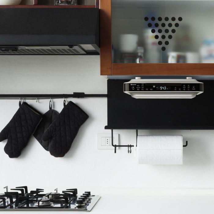 Кухонное радио может быть легко установлено на настенные шкафы.