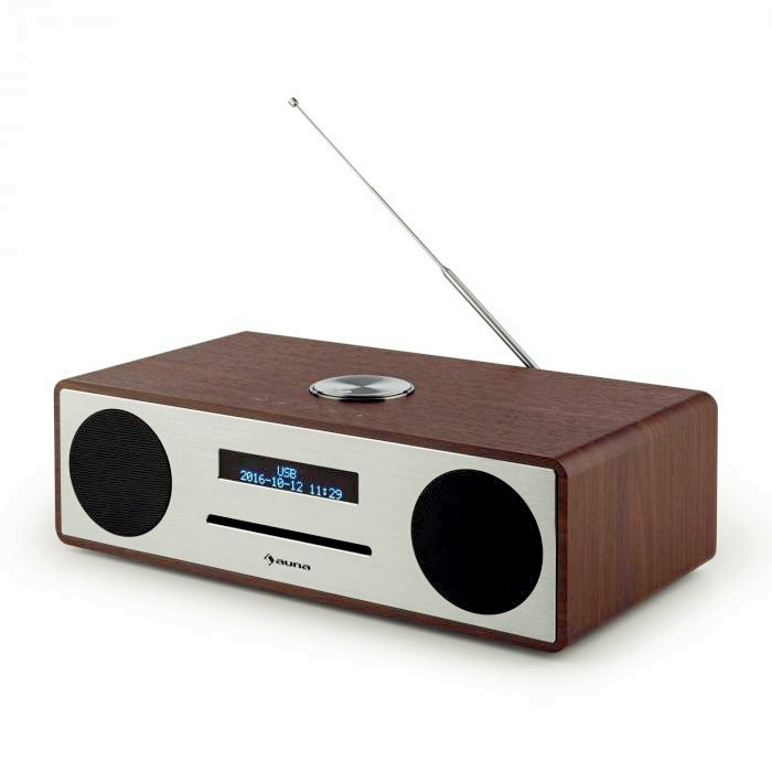 Auna Stanford - настоящий универсал, и он обеспечивает приём как аналоговых, так и цифровых сигналов, обеспечивая доступ к бесчисленным радиостанциям. Функция RDS также использует полезный дополнительный сопроводительный контент, такой как название, альбом или даже новости. Таким образом, музыкальное разнообразие мира DAB + и FM-радио быстро и легко проникает в ваши четыре стены. Интерфейс Bluetooth позволяет легко подключаться к популярным устройствам, будь то смартфон, планшет или домашний компьютер. Помимо воспроизведения беспроводной музыки, auna Stanford также предлагает два классических линейных входа для подключения проводных аудиоустройств. Кроме того, портативные музыкальные файлы в формате MP3 могут передаваться через USB-порт. Чтобы не допустить выключения питания подключенных устройств, для источника питания имеется еще один USB-порт. Компакт-плеер считывает не только обычные компакт-диски, но и широко используемый формат MP3. Если вам нравится слушать какую-то музыку вечером или в постели, вы можете наслаждаться регулируемым Sleeptimer. Утром, чтобы быстро встать, устройство обеспечивает программируемый будильник. Яркие формы, закругленные края и матовая алюминиевая отделка украшают элегантный корпус. Приличный фронт добавляет к дизайну строгости, устройство снабжено многофункциональным управлением с пятью сенсорными кнопками сверху. Это облегчает навигацию по меню. При желании все функции можно контролировать с помощью прилагаемого пульта дистанционного управления.