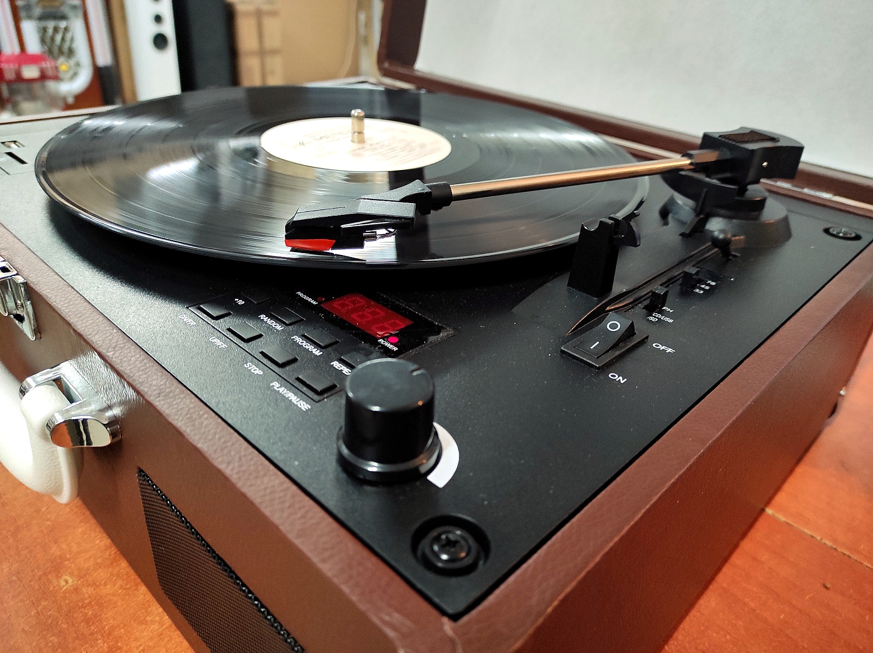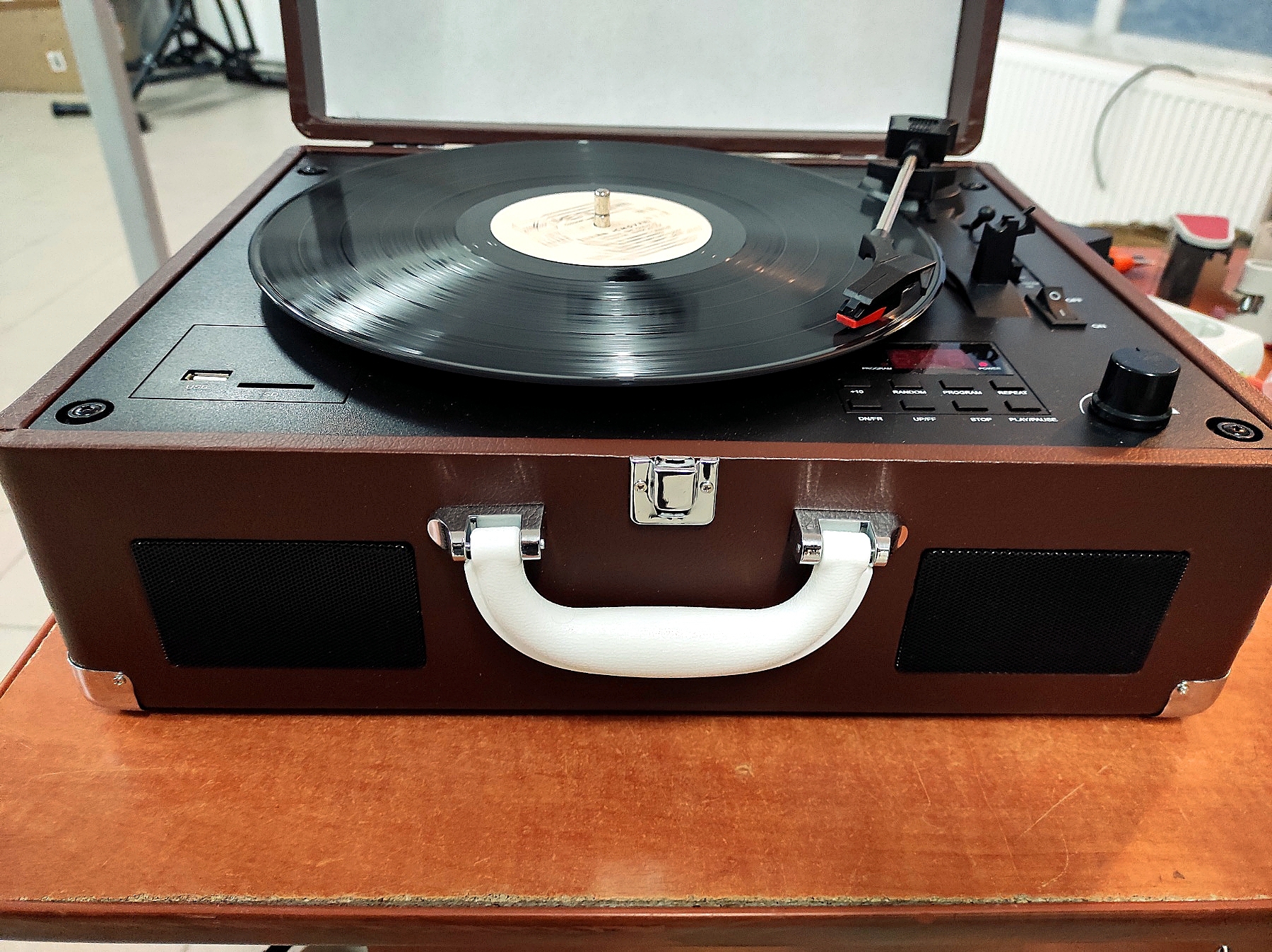 То, что выглядит на первый взгляд, как старый чемодан с 50-х годов, является современным устройством - портативным проигрывателем Auna Peggy Sue CD.