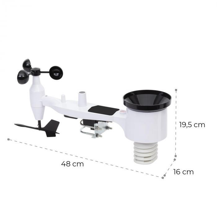 Четыре датчика обеспечивают метеостанцию обширными данными: температура, осадки, относительная влажность, давление воздуха, направление ветра и скорость.