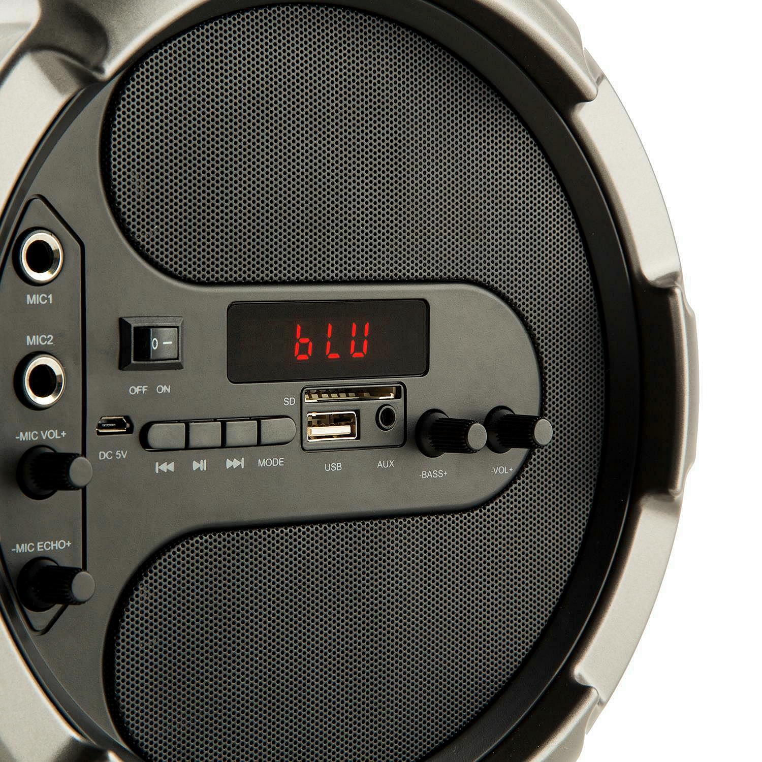 Соединения: 2x 6,3 мм разъем для микрофонного входа, 1x Aux-In, 1x USB-порт, 1x слот для SD-карты