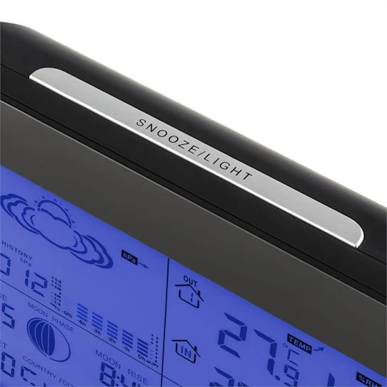 Для отображения погоды устройство оснащено ЖК-дисплеем диагональю 14,5 см с поддержкой синей подсветки. Не требующие пояснений символы показывают погоду и способствуют четкому отображению для удобства чтения.