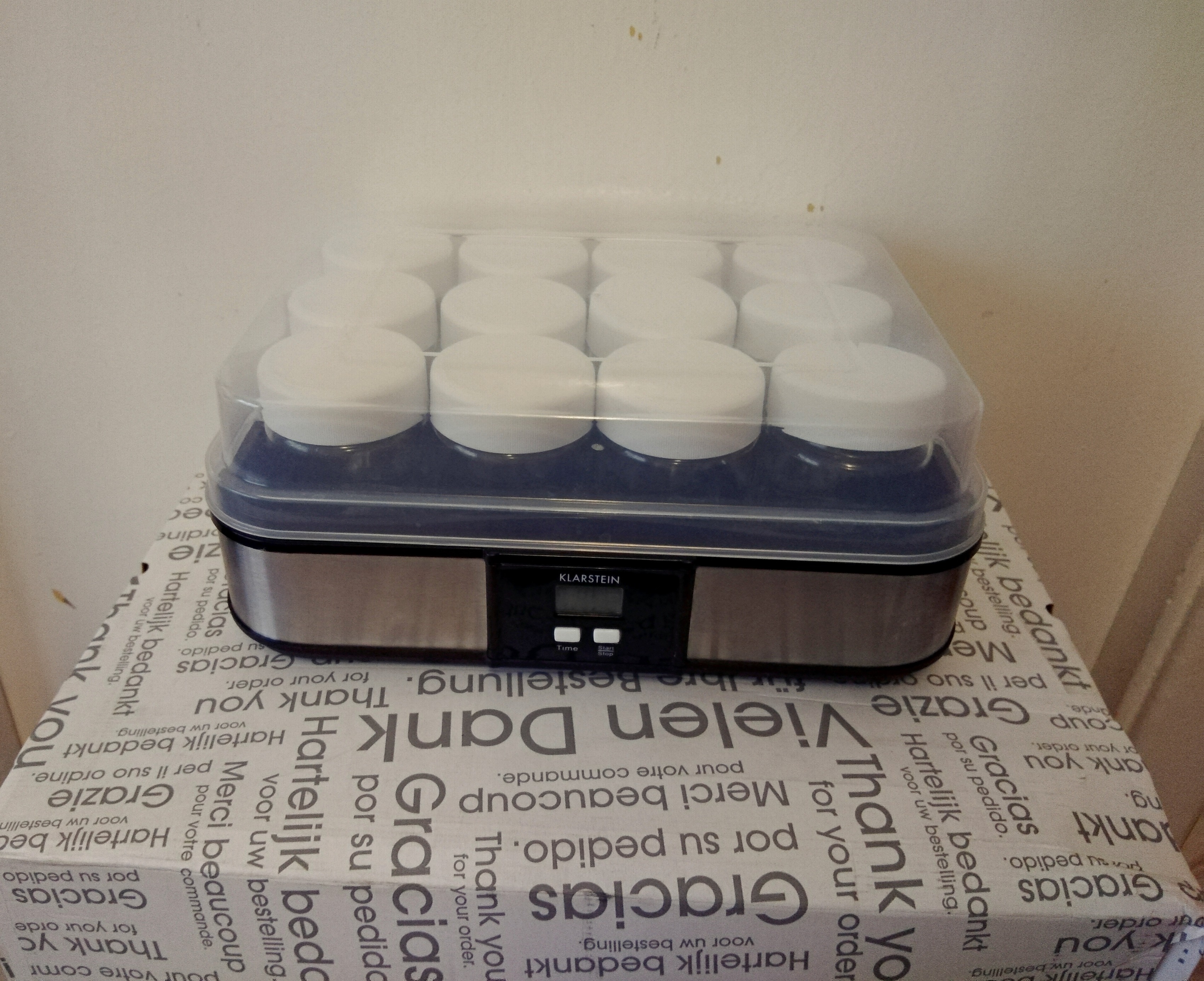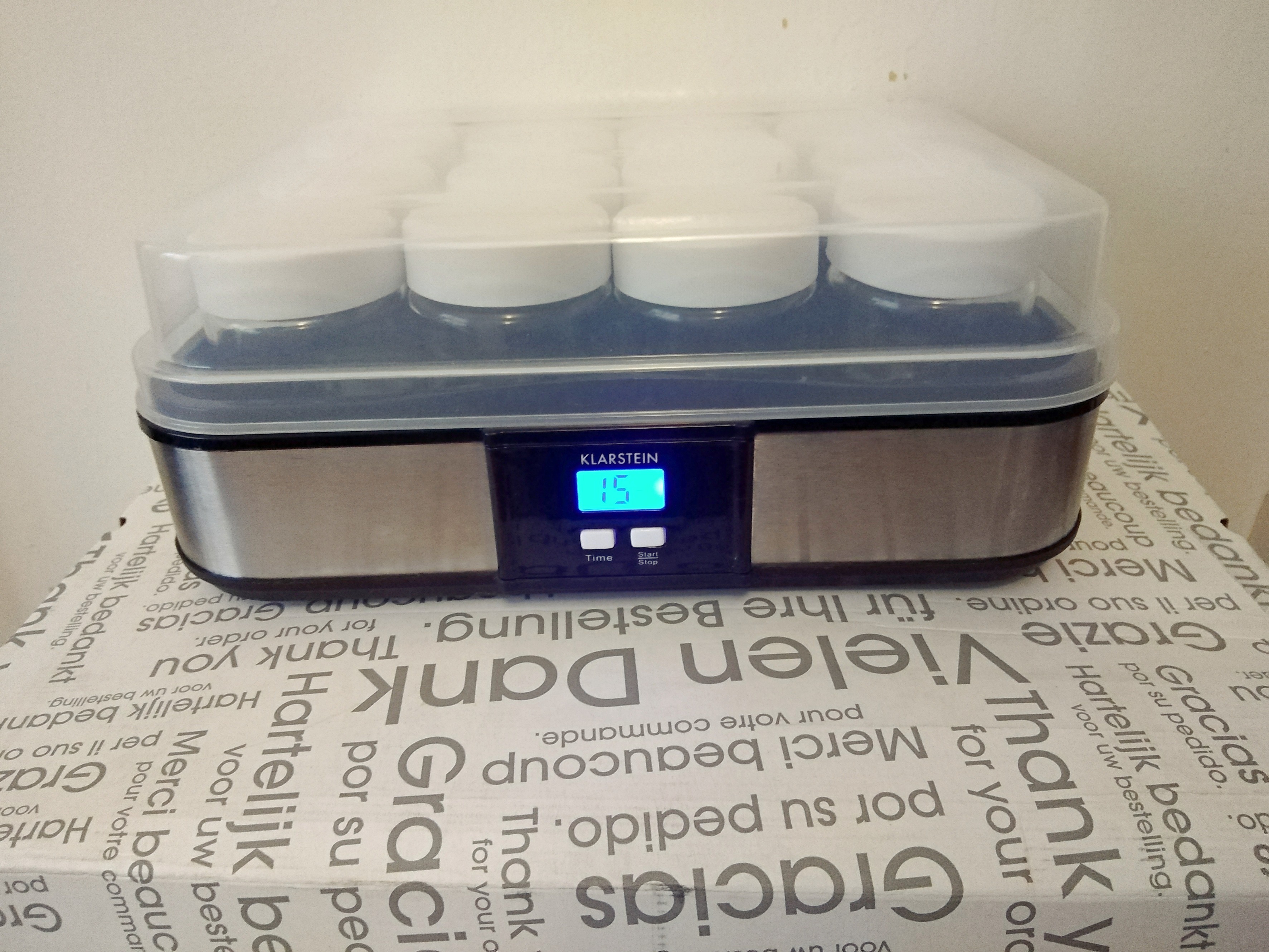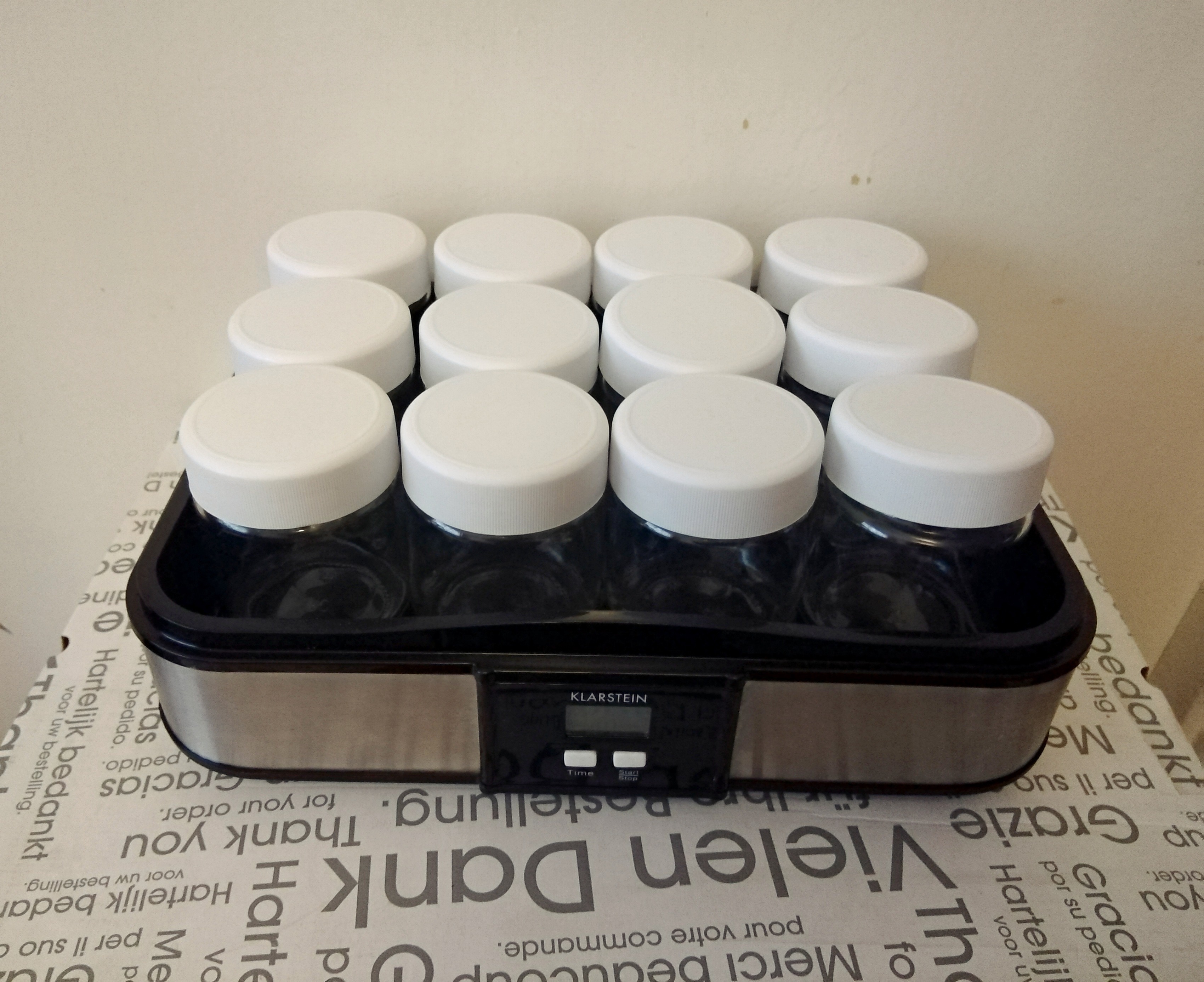 Устройство готово к приготовлению йогурта, в зависимости от бактериальных культур, используется в индивидуально настраиваемый таймер. Маленькие баночки идеальны с их герметичными винтовыми пробками, вы можете взять готовый йогурт на работу или в школу.