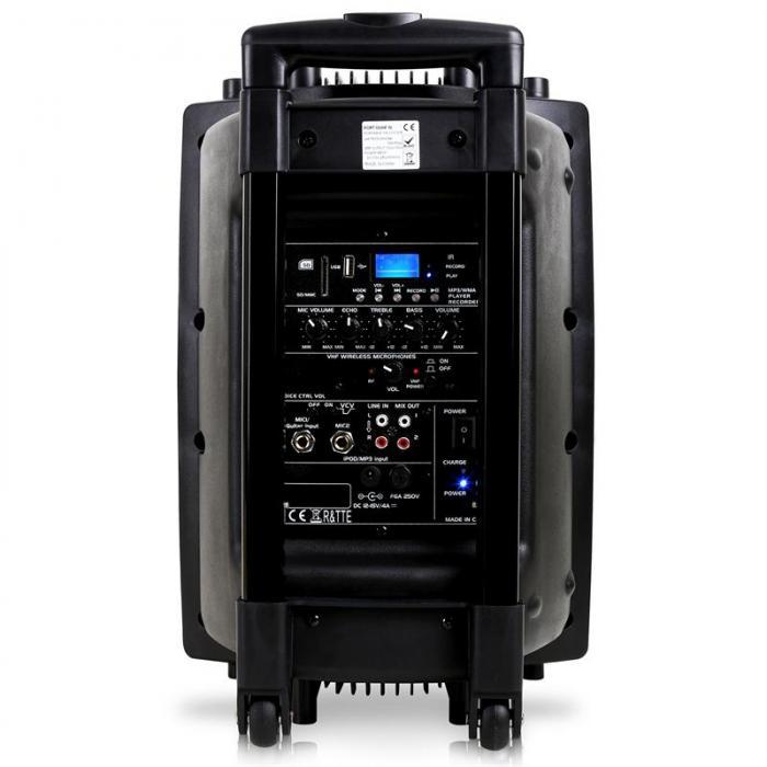 Будьте звездой: включая функцию караоке с включенным в комплект радио и шнуровым микрофоном. Для полного удобства в комплекте иметься пульт д.у. PORT8 легко переносить благодаря ручке и колесикам.