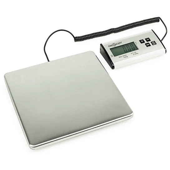 Весы oneConcept Marketeer - идеальный помощник для профессиональной доставки посылок: их можно использовать для быстрого и точного определения веса посылок, благодаря диапазону взвешивания от 50 г до 150 кг.