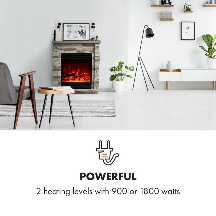 Мощный: 2 уровня нагрева с 900 или 1800 ВтУдобно: электрический камин с реалистичной иллюзией пламени