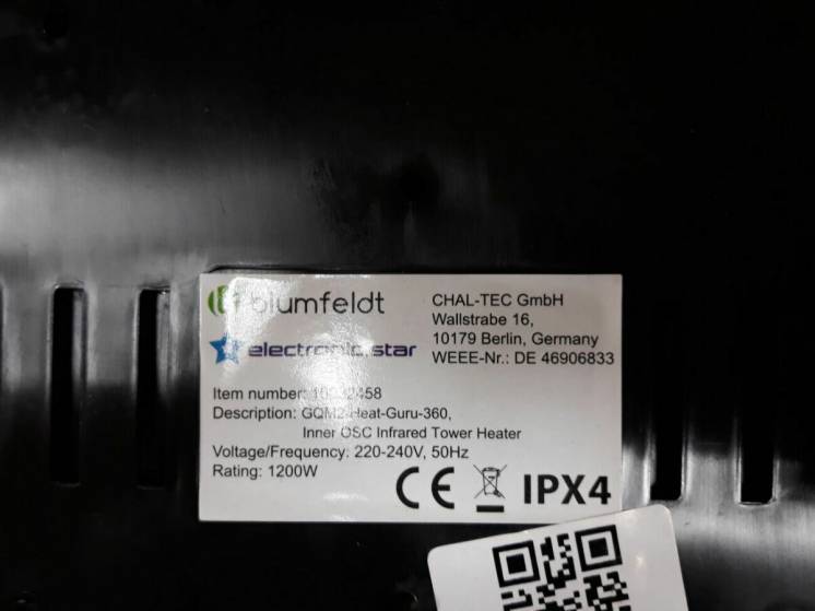 Тепловой обогреватель Blumfeldt Heat Guru 360 градусов 1200 / 600Вт 2 режима обогрева IPX4