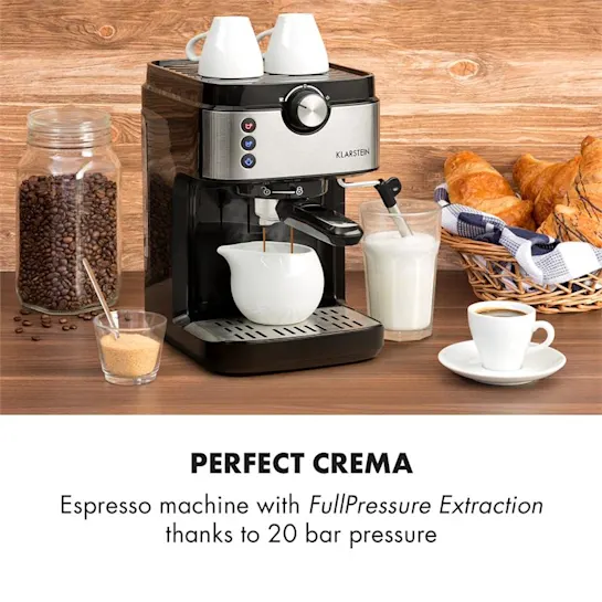 Для страстных ценителей: эспрессо-кофемашина Klarstein BellaVita впечатляет не только своим мощным и вкусным эспрессо, но также простотой управления и простым дизайном. Эспрессо-машина выдавливает горячую воду через порошок эспрессо с мощностью 1575 Вт и давлением 20 бар и полностью высвобождает аромат с помощью экстракции FullPressure. Благодаря системе идеальной температуры нагревательный элемент Thermo Block обеспечивает идеальную температуру воды для приготовления восхитительно горячего эспрессо. Съемный резервуар для воды имеет объем 900 мл и может быть легко снят, наполнен и снова вставлен. Благодаря One Touch Control управление простое и не требует пояснений: одна кнопка готовит один эспрессо, а другая - двойной. Разумеется, подходящие ситовые вставки входят в комплект поставки устройства и могут быть заменены в портафильтре за секунды. Подачу пара можно активировать с помощью другой кнопки, большой поворотный регулятор на кофемашине просто переводится в нужное положение. Подвижная насадка для вспенивания и подачи горячей воды из нержавеющей стали теперь мгновенно создает вспененное молоко для капучино. Для максимального удобства в верхней части кофемашины есть полка для подогрева чашек, BellaVita Espresso после использования легко моется и ждет следующего использования.