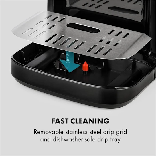 Быстрая очистка: съемная решетка из нержавеющей стали и поддон для сбора капель, который можно мыть в посудомоечной машине