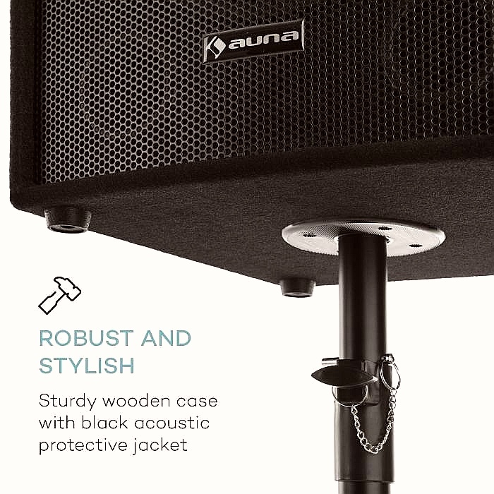 Auna Passive Pair 12 Set - это мощная и надёжная акустика, мощностью 600 Вт, с правильно сбалансированным звуком , применяется для профессиональных презентациях и различных торжественных мероприятиях. Комплект состоит из двух пассивных 30 см (12 дюймов) динамиков с выходной мощностью 300 Вт / 600 Вт максимальной производительности. В комплект поставки также входят два соответствующих кабеля для динамиков. Все элементы комплекта имеют прочный корпус из МДФ, покрытый черным износостойким карпетом, защищающим компоненты от внешних воздействий.