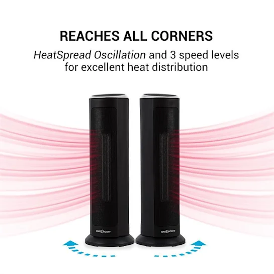 Электрический обогреватель OneConcept Heat Spire 1200/2000 Вт, 8ч, термостат с таймером BK