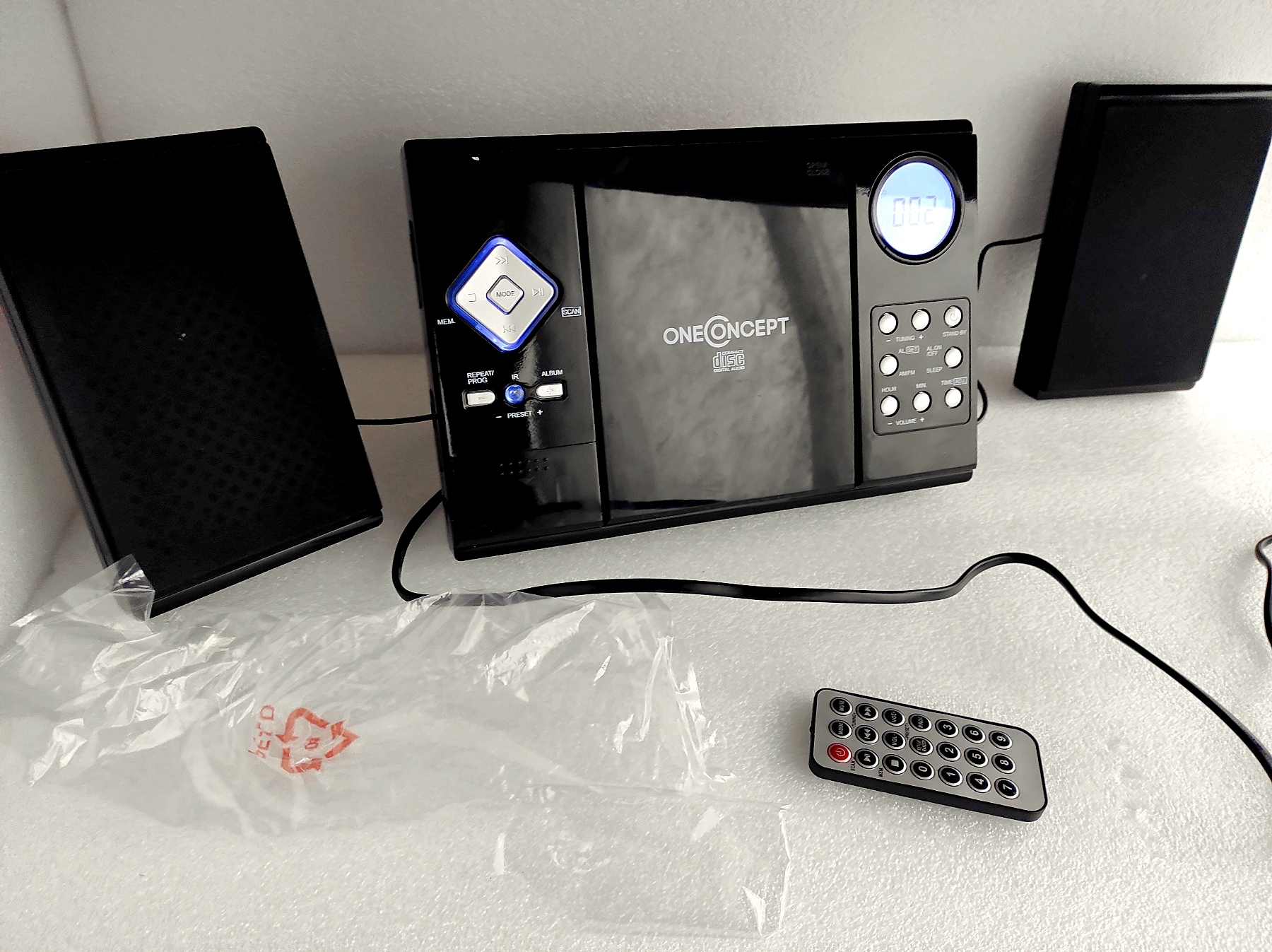 Современная мини система с большими возможностями – воспроизведение CD, USB, SD, AUX, тюнер FM диапазона. Поддержка файловых систем USB: FAT16, FAT32, эффективная навигация папок MP3, вход AUX для подключения внешних аудио компонентов, таких как смартфоны, плееры и ноутбуки и т.д., удобный пульт дистанционного управления, встроенные часы, жк-монитор с синей подсветкой. Проигрываемые медиа-форматы: CD, CD-R, CD-RW, MP3. Возможность настенного крепления. Размеры: устройство 26.5 x 22.5 x 14 см (Ш x В x Г) , динамики 11 x 18 x 6 см (Ш x В x Г) Вес: 1,2 кг